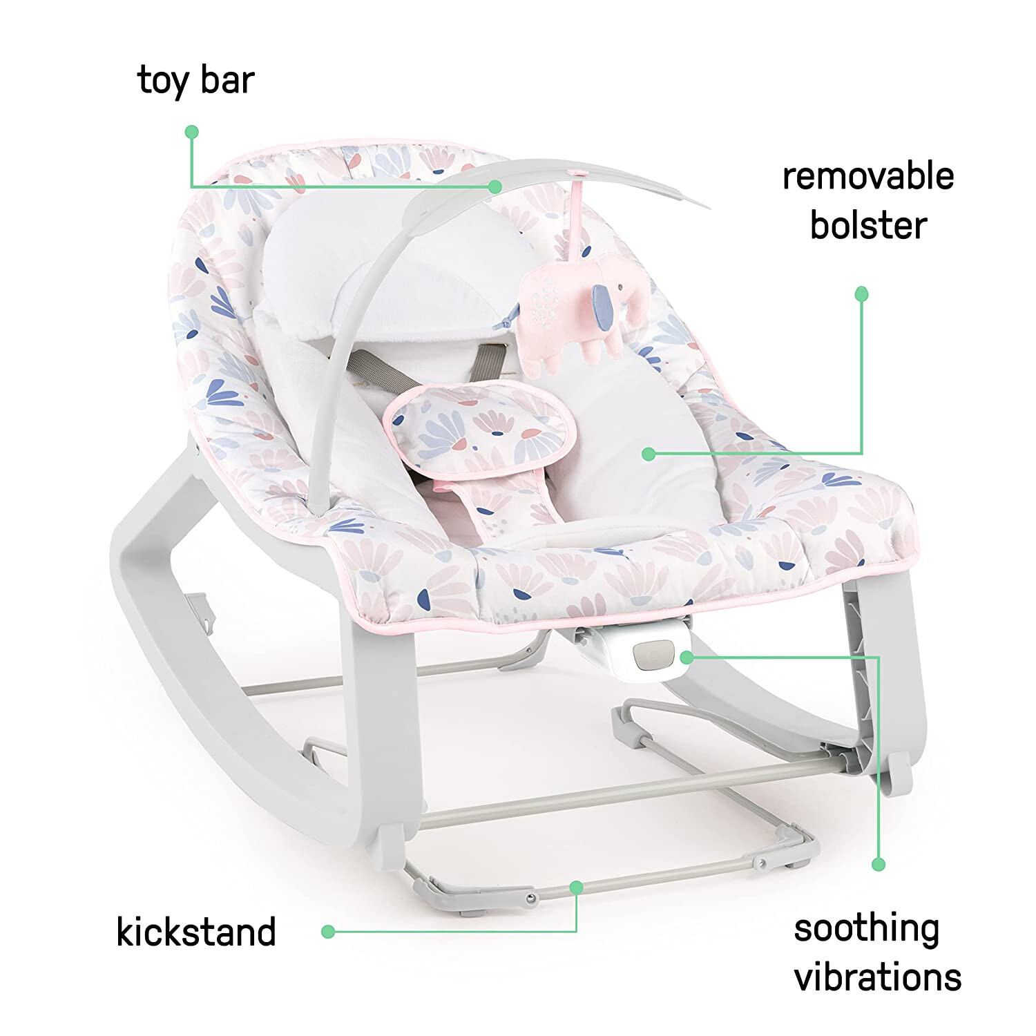 Leagănul și balansoarul Ingenuity Cozy 3 in 1 oferă două elemente esențiale pentru părinți într-un singur design inteligent. Ii ofera micutului un loc comfortabil in care sa se joace, sa stea sau sa se balanseaze inca din primele zile de cand e acasa! Miscarile lui line de balans ajuta la calmarea bebelusului iar vibratiile linistitoare cu bara de jucarii sunt elemente esentiale in timpul micutului petrecut in balansoar.